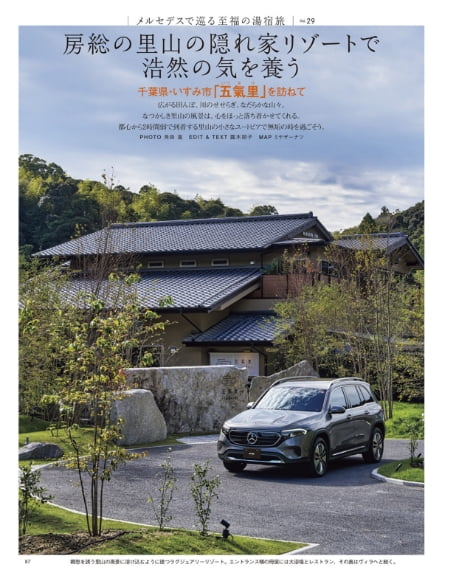 メルセデス・ベンツのオーナー専用マガジン『メルセデス・ベンツ ミー マガジン』にて、五氣里の各施設の紹介やお食事の内容など、素敵な写真と共にボリュームたっぷりにご紹介していただきました。